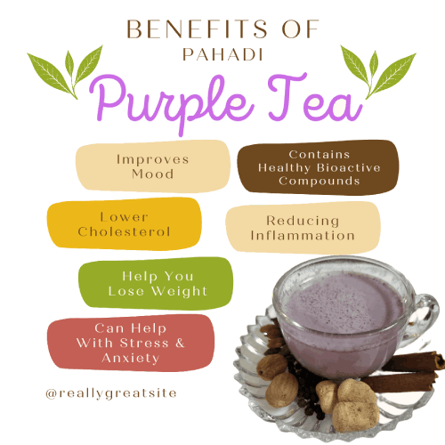 Pahadi Purple Tea is a healthy alternative for those trying to give up coffee or black tea. This warm and sweet drink enhances digestion, provides energy, relieves anxiety, and boosts immunity.